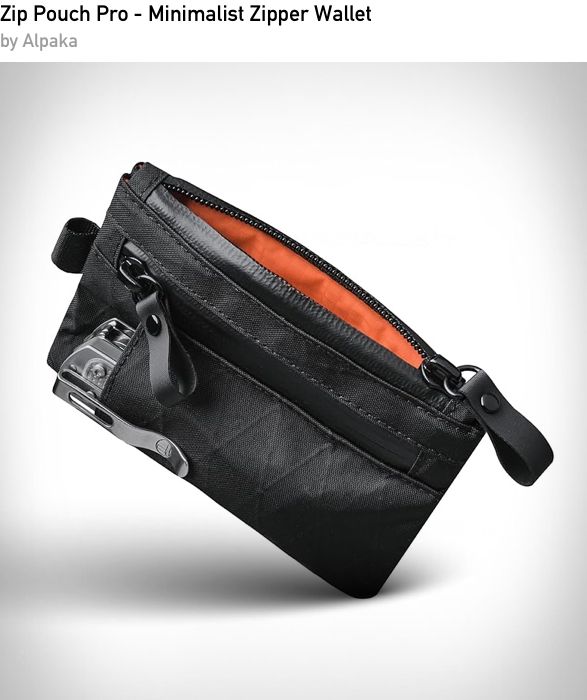 A minimalist zip pouch/wallet made from weather-resistant materials with YKK zippers and RFID-blocking options. Stores cards, cash, and small tools with smart internal organization — a compact EDC upgrade for anyone who prefers a zip-first carry.
