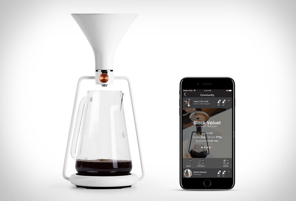 Gina is a smart coffee instrument that combines an easy to use software and technology along with some classic coffee making techniques. Getting the best from both worlds wasn’t easy but we think they succeeded in creating a beautifully designed product, put together with premium materials and some cool tech to get a really nice brew from our favorite fuel: coffee. So it comes with a steel frame that has a Bluetooth scale so you can measure the amount of grains you must use, then you get a ceramic funnel on top, where you set the coffee and then pour the water, on the bottom you get a valve that lets the brewed coffee come through on to the beautiful glass pitcher. You also get a French press system should you prefer a different technique. In fact Gina lets you try out almost every brewing system possible, including the cold drip technique. And being a smart device, you can connect it to your smartphone that will provide instructions and guide you through the process, available for IOS and Android. watch the video below