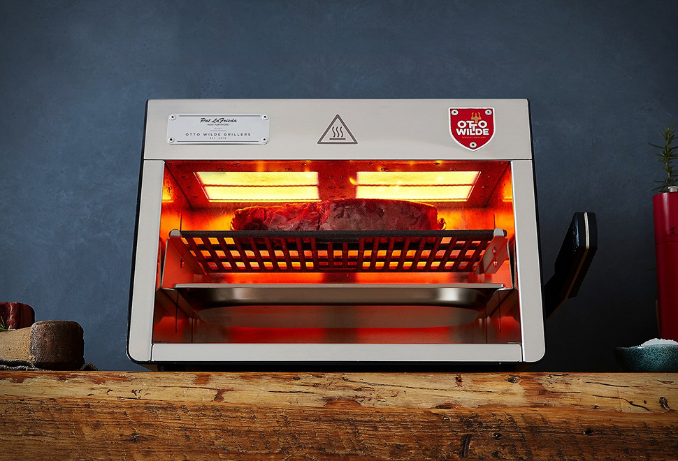 Otto Grill has just been launched on the market and is aimed at those who take grilling seriously. This item uses a pair of individually-adjustable infrared overfire burners to heat up at high temperatures (up to 1500º F) in the time it takes you to say "Rib eye cut”. It’s German made so you’re sure to get top build quality and durability, and is designed by an industrial designer that gave it an interesting look, kind of like a small machine that could very well be on the production line of a factory, the industrial look will cool in the kitchen. Its prime goal is to grill meat, the power is there, making sure you get the most wanted crust but preserving all of the juices inside, obviously you may use it to cook other things so the cookbook that comes along while subscribing to the newsletter is welcome and will assist you in making it more versatile. Be sure to check it out should you be a grill fan. watch the video below