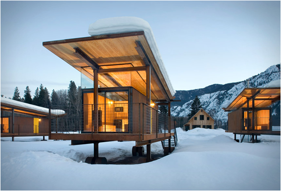 Rolling Huts is the ultimate camping experience, the perfect stop for hikers, mountain bikers and cross-country skiers. Designed by Olson Kundig Architects, the Huts are low-tech and low-impact in their design. Located in Washingtons Methow Valley, they feature giant wheels that lift the structures providing an unobstructed view into nature and the prospect of the surrounding mountains.