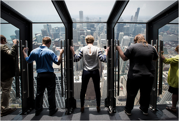 Chicago´s latest heart racing attraction just opened at more than a thousand feet in the air of the John Hancock Center. Tilt is an eight person glass enclosure that tilts visitors forward for a unique perspective of the citys The Magnificent Mile. Visitors to Chicago will now be able to experience unsurpassable views whilst the platform slowly moves outward to an adventurous angle above the Windy City. That´s if you can stomach it. watch the video of Tilt in action.