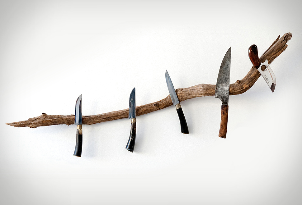 German design house BuchholzBerlin, have given a new meaning to the magnetic knife rack. Designed especially for metal kitchen utensils, they are using Germany locally grown wood branches as knife racks; the result is quite astounding. You may choose from three different sizes which include the small unit with 3 super strong magnets, the medium with 4 magnets or the large with 5, enabling you to hold the same number of knives on it. Each unit is unique with the naturally grown effects on the branches. Think outside the box and get your knives out of the drawer with this original rack.