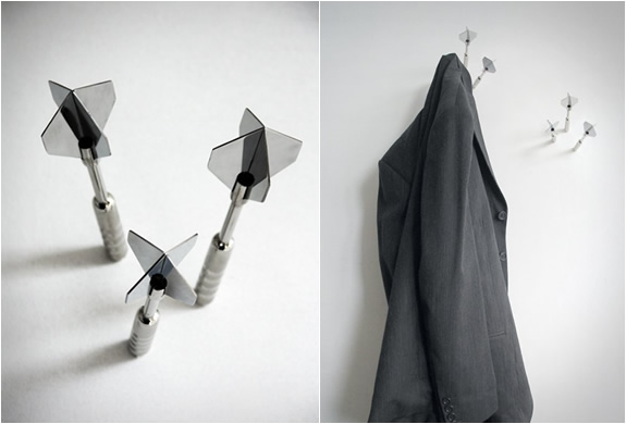 One for darts fans. The Dart Coat Hooks come in a set of three Chrome Steel darts with a screw for wall mounting. Designed by Anthony Chrisp, the darts measure approximately 6.75 inches long. The problem is, they look so cool you might not want to cover them up. Great gift for a darts fan or for your games room.