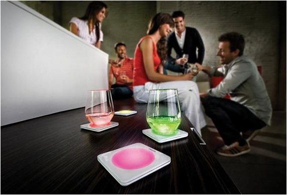 Add some light to your holiday and drinks with a set of four coasters with decorative colored LEDs. The Lumiware Color Changing Coasters by Philips glow with a wide range of colors, gently illuminating glasses with a magical and cool effect. The coasters are water resistant for outdoor use and work up to 12 hours. They are charged via an included wireless induction charger. via