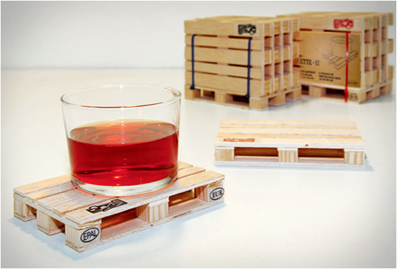 Spanish studio Labyrinth have created these very original, durable coasters. They scaled down the standard euro pallet to one tenth of its size, creating these stackable palette coasters that are exact miniatures of the industrial models, right down to their quality stamps.