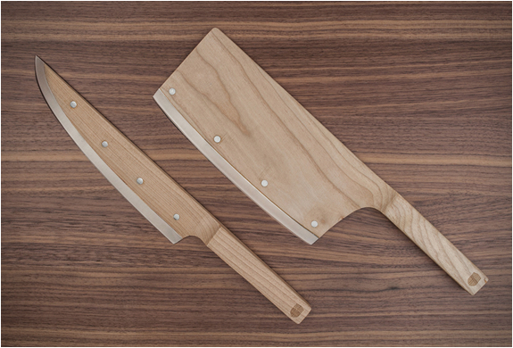 The award winning Maple Set is now available for pre-order! The beautiful set breaks the mould of traditional knives and reimagines the classic design by reducing the size and visual weight of the blade. Maple Set includes an 8 inch Chefs knife, and an 8 inch Butchers knife, both made with Canadian Maple and German stainless steel. Each knife is hand made and unique. The minimalist set comes nicely packaged in a custom fit foam case and sturdy box, making a great gift to any chef or foodie with a passion.