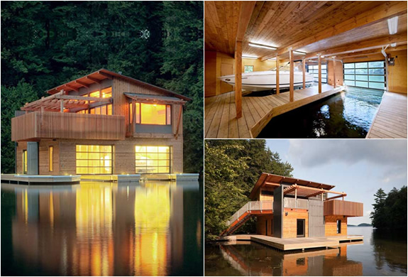 Muskoka Lakes Boathouse by Ottawa-based studio Christopher Simmonds Architect is located in Muskoka Lakes, Ontario, Canada. The construction that gets its name from its location is a renewal of an existing boathouse with 600 square meters, it includes a second guest suite and roof terrace. Its design in the wilderness provides varied views as well as a sheltering foil to the open lake breezes and water traffic.