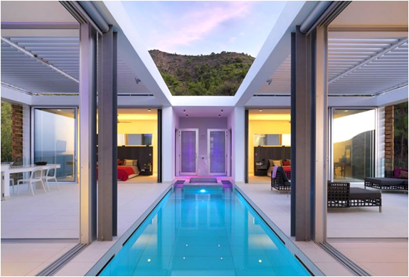 This stunning house is located in Cyprus and was designed by Koutsoftides Architects. The concept of construction was to unify the two buildings and landscapes and get a sense of calm and serenity. The main floor is divided in two by the ion in the middle of a courtyard and pool. The design of the house is facing north to overlook the fishing port of Pomos.