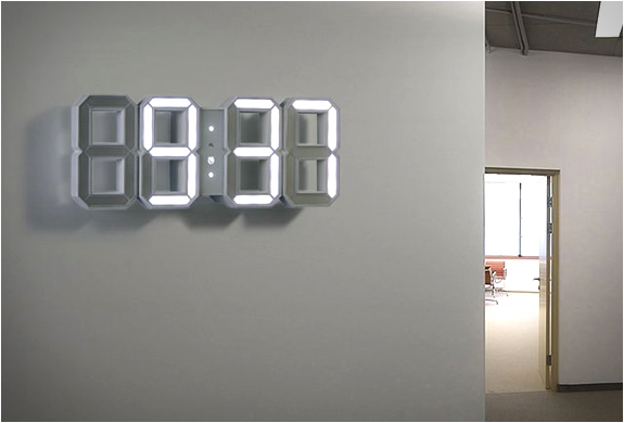 Czech studio Kibardindesign, creators of the innovative "Bat" - levitating wireless computer mouse, are now selling the popular digital wall clock after the first prototype aroused a huge public interest. The 3D version of a digital LED clock face is named "White & White", it features a light sensitive sensor that changes the brightness of the digits when it becomes dark. It also has an alarm option.