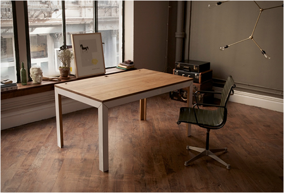 Scandinavian Designer Soren Rose runs a NY based design company focused on residential living, we have featured their minimalist Milk Desk before. The guys are specialists in bespoke furniture & interiors, and will do anything from designing a sink for your new apartment, to drawing your new home entirely. Their Tribeca Desk is another beautiful example of their work, an elegant and functional work desk, that keeps your workspace clutter free.