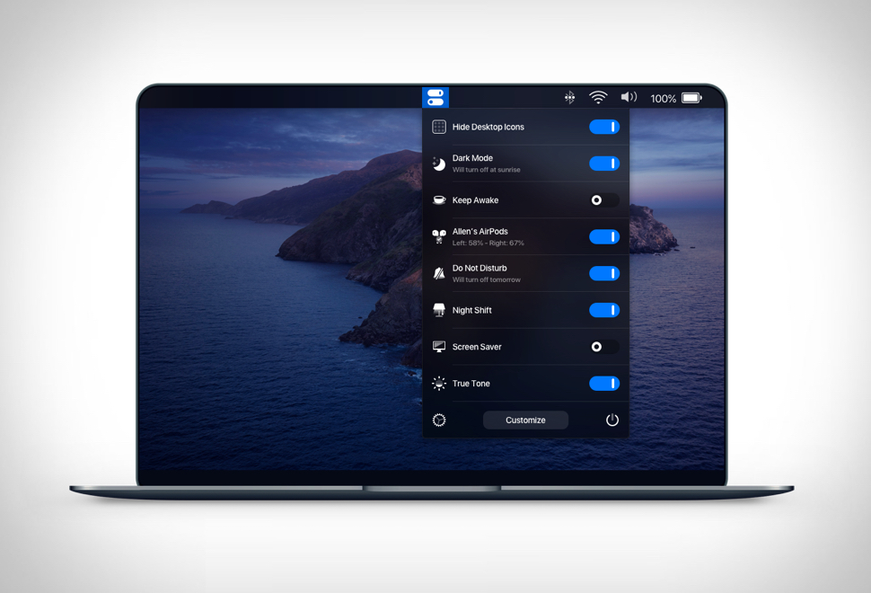 One Switch is a little menubar app for macOS, it keeps all your powerful switches in one place. The app lets you hide your messy desktop with one click, it sits in the Mac menu bar, and offers a list of switches for you to toggle various features on and off, offering instant access to all kinds of great hacks and tweaks, from toggling Dark Mode to connecting AirPods. The app is available as part of Mac app subscription service Setapp, or you can buy directly from the developer at One Switch.