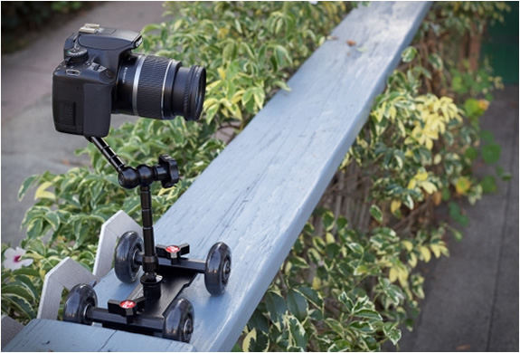 Even if you have the steadiest of hands you wont be able to avoid a nauseating home video. You need a smooth and sturdy dolly for pro-style video. The Camera Table Dolly by Photojojo is a compact, affordable dolly for pro-style video panning. The system is very simple, your camera threads onto the dolly’s tripod mount and is ready to roll! It has an adjustable arm to shoot at any angle and can hold your DLSR, or your point-and-shoot/camera phone. Comes in a compact carrying case. source