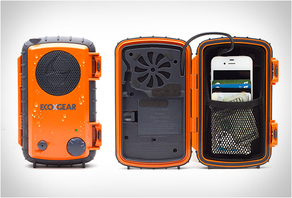 Ecoxpro by Ecoxgear is a rugged waterproof case with a built-in speaker. It is impact resistant, waterproof and floats. It features a spacious interior capable of keeping your phone, keys, cash, and other valuables safe from sand, sun and water. It has a 30hr battery life and fits most mp3 players and phones including iPhone 4/4S & 5, Samsung S3, Android, Windows & Blackberry.