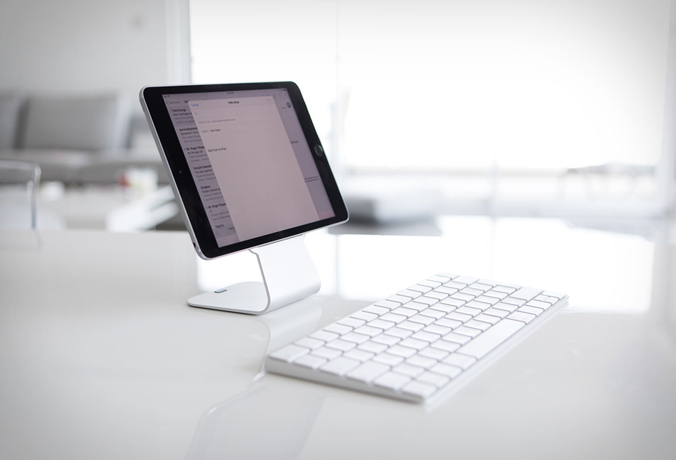 This has to be the most elegant tablet stand we have seen to date. Slope by Dekke is a minimal aluminum stand that features a unique Nanofoam suction pad (mimicking the Gecko lizard´s toe pads) that firmly grips the tablet from behind securing it in a high position ideal for hands-free reading. The sleek stand also features a second suction pad on the foot to keep it securely in place, and is available in two sizes. watch the video