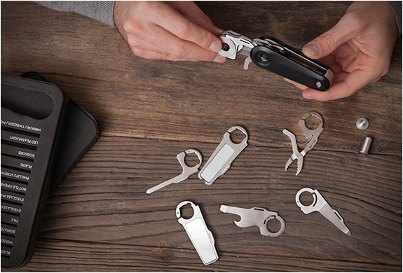 Switch by Quirky is a 12-piece customizable pocket knife ideal for fishing. It comes with 12 easily interchangeable attachments that perform 16 distinct functions and can be mixed, matched and customized to suit your particular MacGyvering skillset. Comes with: blade, wood saw, serrated blade, bottle opener/flathead screwdriver, micro flathead screwdriver, micro Phillips screwdriver, file, Phillips screwdriver, pliers, scissors, LED flashlight, and mirror/tweezer/pick/pen. watch the video