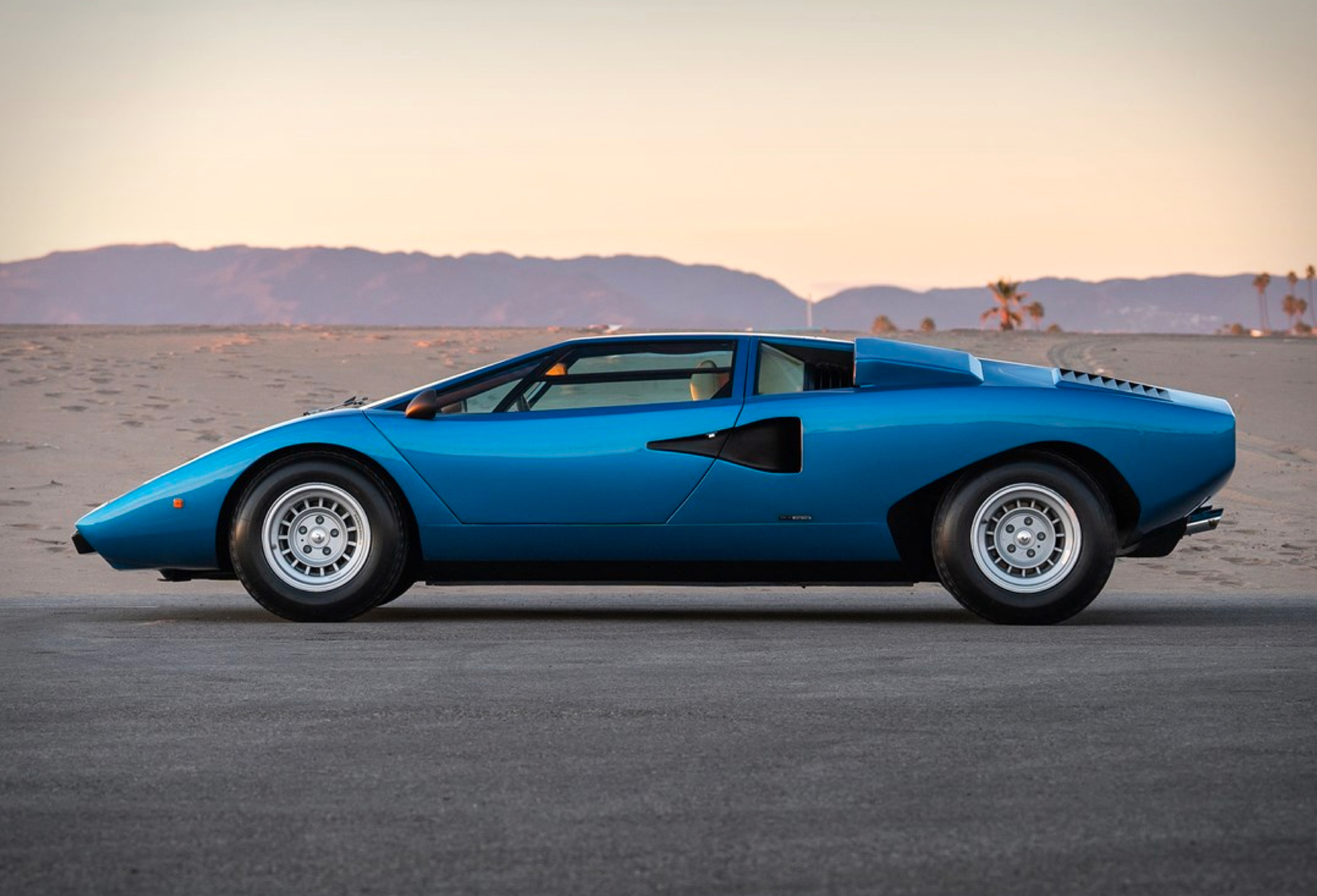 With an illustrious ownership history, the Countach features an original Blu Tahiti color, enhancing its allure. Its mid-rear 3.9-liter V-12 engine, a masterpiece by Giotto Bizzarrini, powers this automotive legend. Notably, the LP 400 design showcases the earliest scissor doors and the concept of a periscope-style rearview mirror, evident in the stylish roof channel.