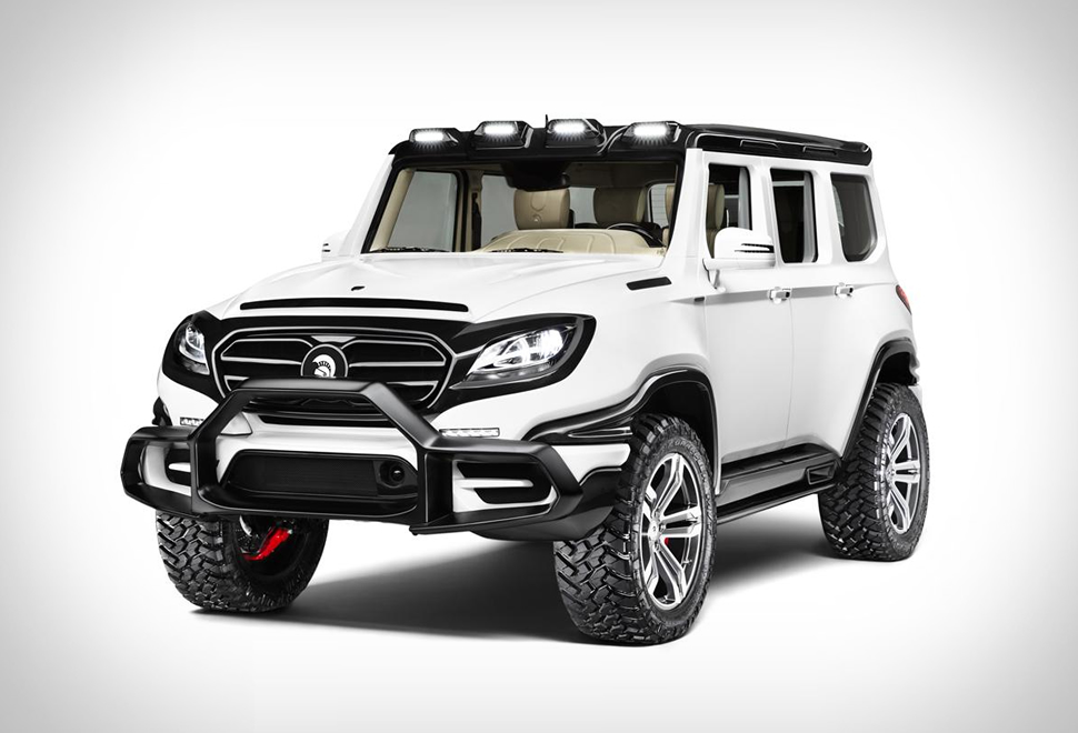 Based in Modena, Italy, the historical home of sports car excellence, Ares Design is a modern coach builder founded in 2014 by Dany Bahar, the former boss of Lotus. The first of the company’s products is this modified G-Wagen, dubbed the Ares X-Raid, a 760HP beast with a bespoke composite body. Based on the Mercedes G63, the car comes complete with a tuned 760 horsepower, 5.5-liter, twin-turbo V8 engine, and features a body made from carbon, along with aluminium, to shed a significant amount of weight (440lbs) over a standard G63. Top speed is rated at 155mph (250km/h). Inside there is a redesigned dashboard with a more luxurious look and feel, single VIP seats at the back, and everything is covered with high-end materials, including Nappa leather and lots of carbon fiber trim.