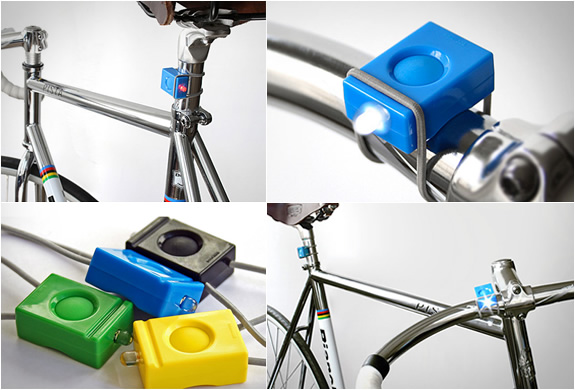 Swedish Stockholm based company Bookman has introduced a stylish, luminous and pocket-sized bicycle accessory, The Bookman Light. The tiny removable lights are very easy to apply, the square plastic case has an oversized rubber button and a groove for the attaching elastic cord. It features 3 flashing modes and is available in yellow, green, blue or black.