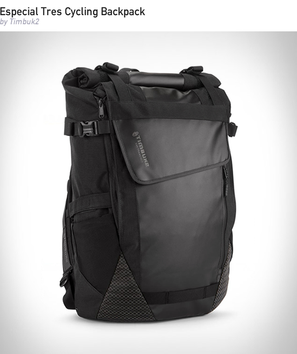 The new Tres Backpack has an improved fit and greater visibility for safe, comfortable riding. The Tres offers serious expansion options in its roll-top closure and gusseted front pocket for big-haul days, and its super cushioned, ventilated backpack straps and backbender panel feel good on your back and shoulders and keep you cool.
