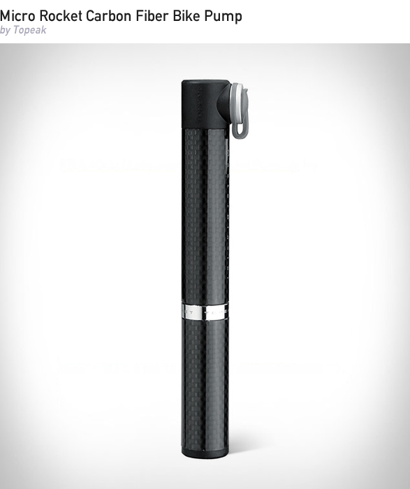 For weight-obsessed roadies, heres 55 grams of pocket-sized pumping punch. The Topeak Micro Rocket Carbon MasterBlaster Mini Pump features a carbon handle and barrel sheath for light weight, plus a high pressure design that pumps up to 160 psi.