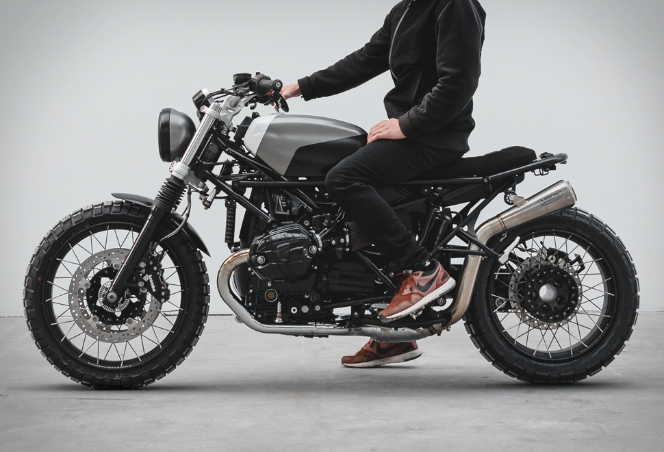 Available for purchase is this stunning build by Dresden-based motorcycle shop Hookie Co. The gorgeous transformation of a BMW R NineT was named "Grey Chameleon" and is based on a standalone and unique solution called "Moto-Kit" that features a new subframe, aluminum fuel tank, carbon-fibre gas tank cover, alcantara seat and aluminum e-tray with a super-stylish cargo strap. It is also fitted with an Arrow Pro-Racing Titanium exhaust, Pirelli Scorpion Rally STR tires, new electronics, and spy mirrors. You can choose between a DIY-Moto-Kit and build by yourself if you are the proud owner of a BMW R Ninet, or order a complete bike such as this one.