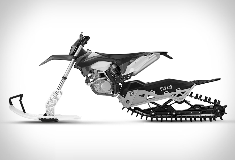 The Camso DTS 129 snow bike kit turns a dirt bike into a radical snow machine! The kit attaches onto most dirt bikes and comes completely assembled and ready to install, it includes everything you need to convert your dirt bike into a snowbike. Its designed to integrate with your bikes original balance and dynamics for the ultimate ride on and off trail. The converted Snowbike is much lighter than a traditional snowmobile, allowing for much greater maneuverability and control. The kit bolts to your bike with no modifications, transforming it into the ultimate all terrain machine. Watch the awesome kit in action in the video below