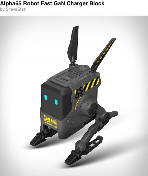 The GravaStar Alpha65 is a 65 watt GaN fast charger wrapped in the brand’s signature robot inspired design. It delivers fast charging for laptops, phones, and tablets while remaining compact and travel friendly. Foldable prongs and efficient power delivery make it practical despite its bold styling.