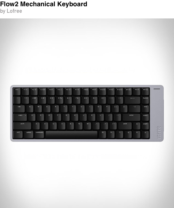 The LOFREE Flow2 is a low profile mechanical keyboard designed for comfort and style. It features slim mechanical switches, a rechargeable battery, and support for multiple connections including Bluetooth and wired use. The aluminum body and soft key feel make it ideal for long work sessions across multiple devices.