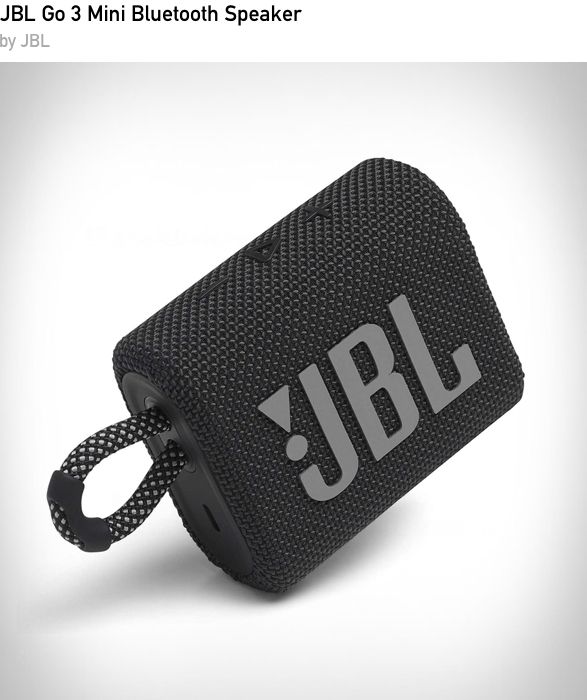 Small size, big sound, the JBL Go 3 packs punchy audio and deep bass into a palm-sized, waterproof design. Perfect for on-the-go tunes whether you’re at the beach, park, or backyard BBQ.