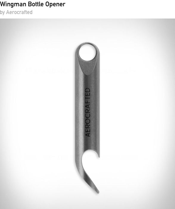Made from aerospace-grade titanium, the Aerocrafted Wingman Bottle Opener is a featherlight multi-tool that’s as strong as it is elegant. A sleek EDC essential for cracking open a cold one in style.