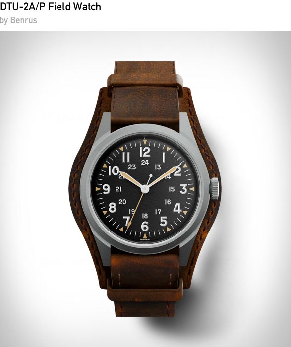 The Benrus DTU-2A/P is a faithful reissue of the classic military field watch once worn by U.S. soldiers. With its hand-wound mechanical movement, matte black dial, and domed acrylic crystal, it’s built for precision and endurance in any condition.
