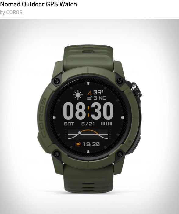 A rugged smartwatch built for outdoor adventurers, the COROS Nomad offers dual-frequency GPS, downloadable global maps, the Adventure Journal voice pin feature, and impressive battery life up to 50 hours with GPS use.