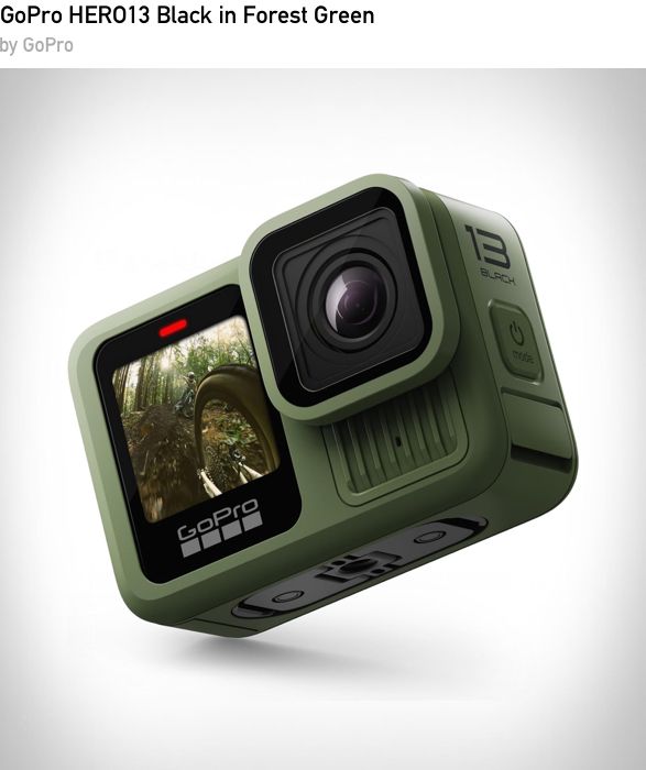 This limited edition Forest Green version of the HERO13 Black blends into nature while delivering top-tier performance, 5.3K60 video, 27MP stills, HyperSmooth 6.0 stabilization, Enduro battery, and support for HB-Series lens mods.