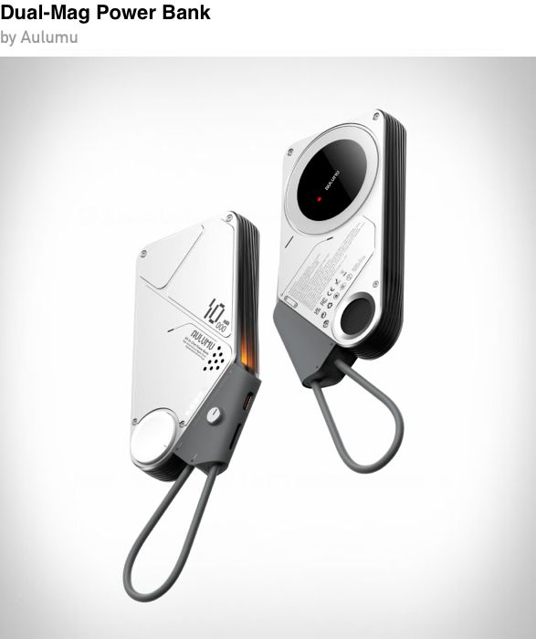 Aulumu Dual Mag Power Bank combines magnetic charging with portable capacity in a compact body built for daily carry. Designed to charge multiple devices with minimal clutter, it works well for travel or desk setups where cables become a mess. The slim form and dual charging functionality make it a practical modern power solution.