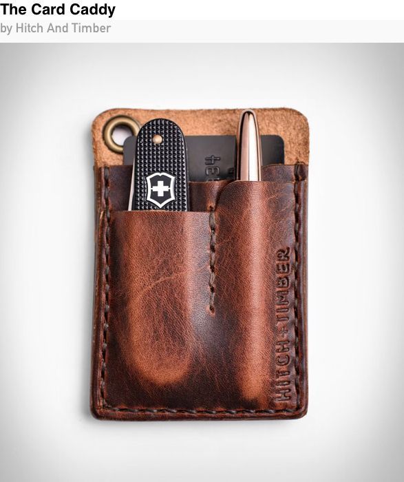 Hitch and Timber Card Caddy keeps everyday carry simple with a compact leather design built to hold cards, cash and small essentials without bulk. The handmade construction focuses on durability and clean organization, aging naturally over time as the leather develops character. It is a minimalist wallet made for people who prefer fewer items done well.