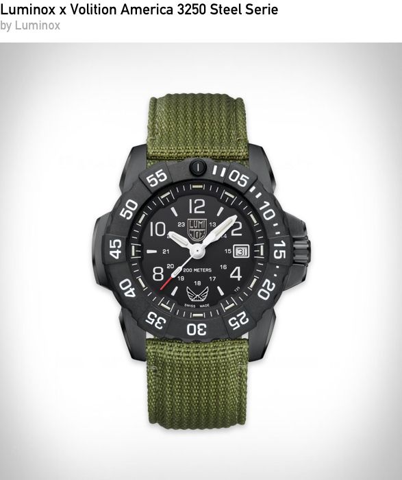 Luminox x Volition America 3250 Steel Series is a military inspired watch built for durability and constant legibility. The solid steel case and signature illumination technology keep it ready for low light conditions and daily wear alike. It delivers tool watch reliability with a bold tactical presence.