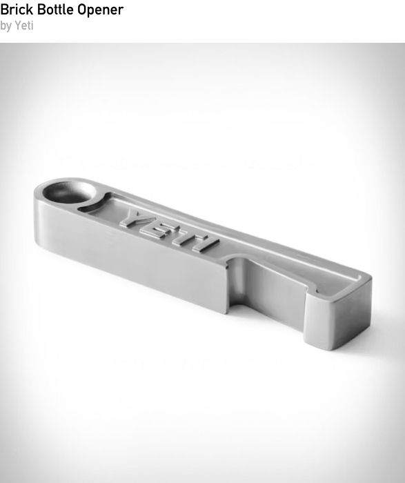 YETI Brick Bottle Opener takes a simple everyday tool and builds it with the same over engineered approach the brand is known for. Made from solid metal with a compact, weighty feel, it is designed to live on a counter, in a camp kitchen or by the cooler without getting lost. The clean industrial design keeps things minimal while delivering dependable function every time you pop a bottle.