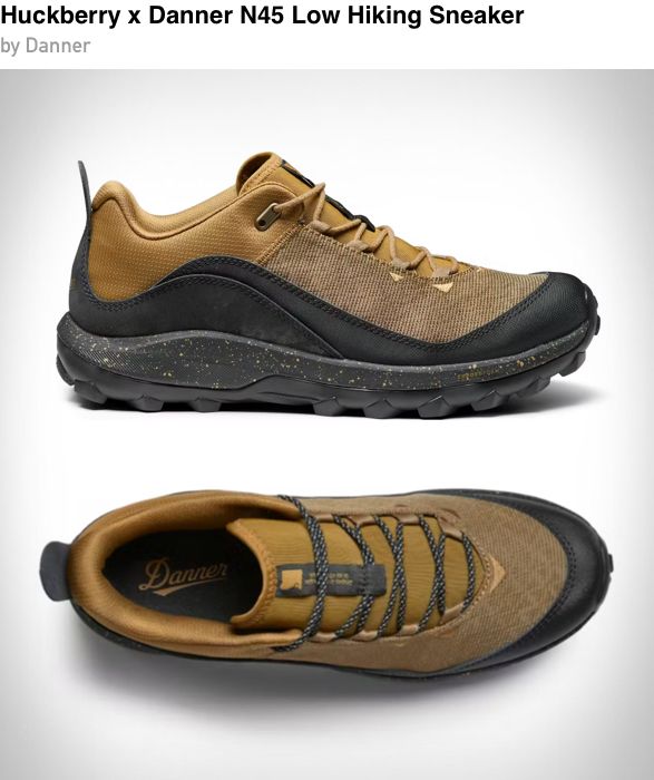 The Huckberry x Danner N45 Low Hiking Sneaker blends trail performance with street ready comfort, featuring a rugged Perspair upper inspired by convertible workboot materials and a supportive EnduroFoam midsole for long days on uneven terrain. With a custom Vibram N45 rubber outsole and breathable build, these sneakers stand up to both hiking and urban wandering.