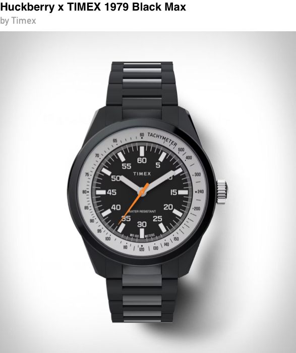 The Huckberry x TIMEX 1979 Black Max revives a cult classic with a modern twist, pairing a bold all-black 41 mm stainless steel case and bracelet with a high-contrast dial and bright orange seconds hand. Powered by a reliable quartz movement and rated to 100 m water resistance, it blends vintage sports watch attitude with everyday durability.