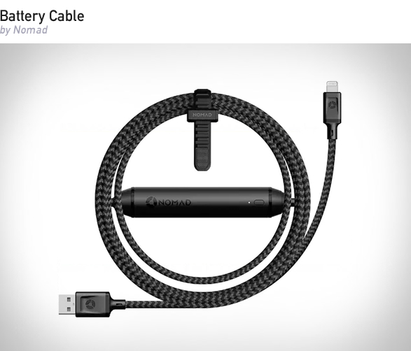 A battery pack and charging cable in one sleek, durable package. Nomad’s charging solutions are infinitely useful, and to boot they make them out of durable materials that give them a long life and an appetite for adventure. The Battery Cable is a Lightning charging cable for your iPhone with a built-in battery pack for charging.