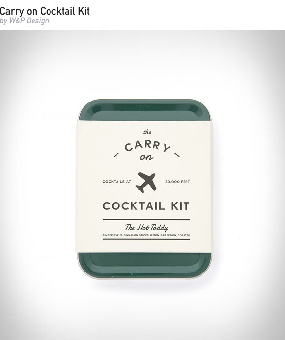 The Carry On Cocktail Kit provides everything you need to mix two proper Hot Toddy cocktails at 30,000 feet. Simply carry on your kit (don’t worry, it will make it through security just fine), order a mini-bottle of whiskey, rum or brandy, and use the custom combination bar spoon / muddler to mix in the other ingredients.