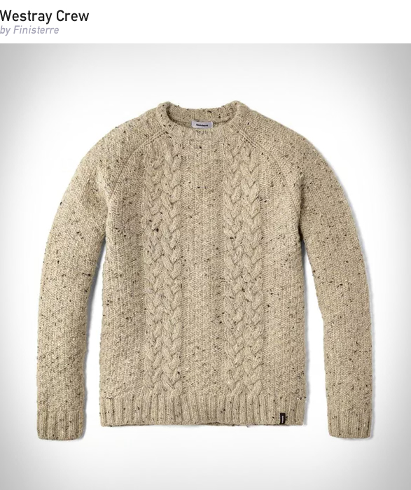 The Westcray Crew by Finisterre is a traditional fisherman style cable jumper knitted in a Donegal tweed yarn and made from 100% British wool. The wool has had minimal processing and retains the lanolin in the yarn, giving it a natural feel and smell.