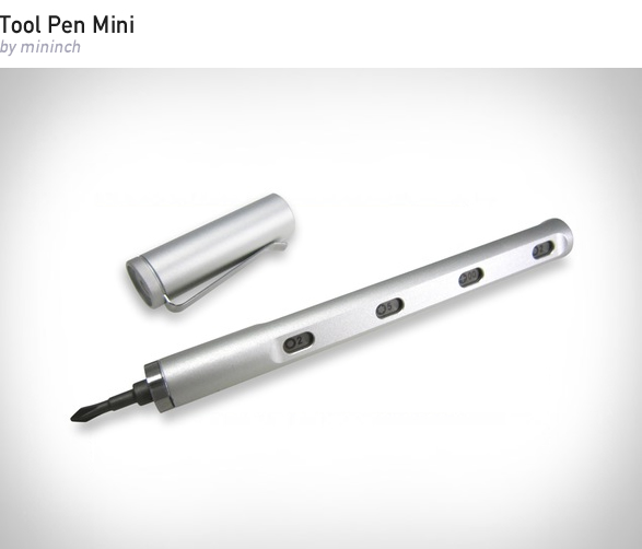 Tool Pen Mini is elegantly crafted from lightweight, solid aluminum that fits comfortably in your pocket with its magnet-secured cap and smooth, sand-blasted surface. The barrel holds up to five screwdriver bits, each of which is tagged for spec and size and 100% visible through the barrel’s length-long window.