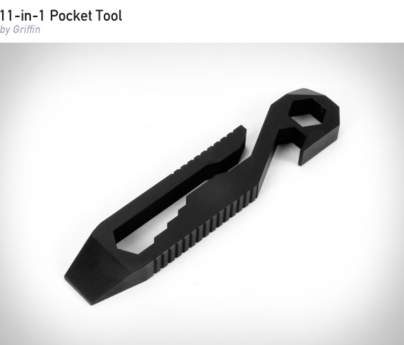 The Griffin Pocket Tool is a pocket-sized tool that packs a ridiculous amount of function into a handheld form. It has a sleek profile that incorporates more than 11 tools in one. The deep pocket clip keeps your keys in place and the bevy of tools for your everyday needs.