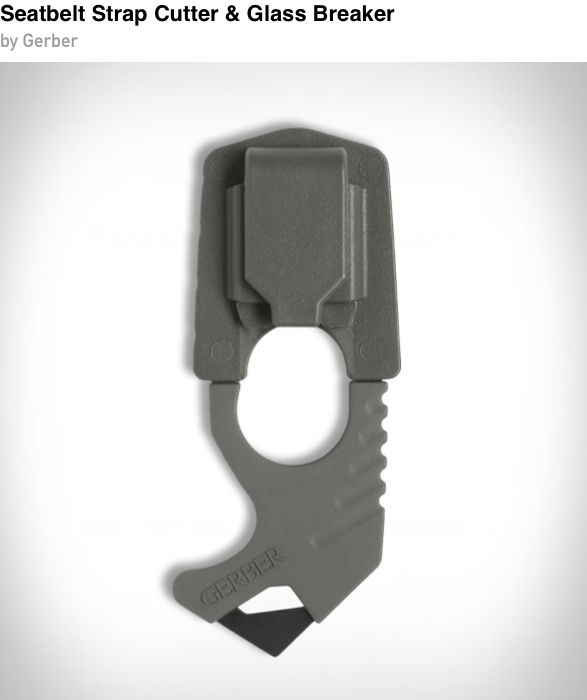 A simple but serious safety tool, the Gerber Seatbelt Strap Cutter is designed to get you out of trouble when every second counts. Designed with a lanyard hole, glass breaker and blunt hook to get under belts, webbing, straps and clothes in any situation or emergency.