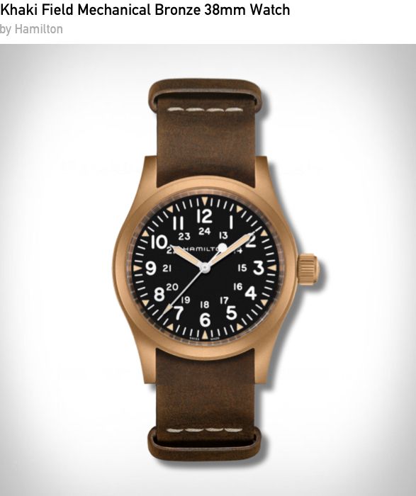 The Hamilton Khaki Field Mechanical gets a rugged upgrade with a warm bronze case that develops a unique patina over time, telling your story with every wear. Its 38mm size strikes the perfect balance between vintage and modern, while the hand-wound movement and military-inspired dial keep things pure and purposeful. A field watch built to last — and to age beautifully.