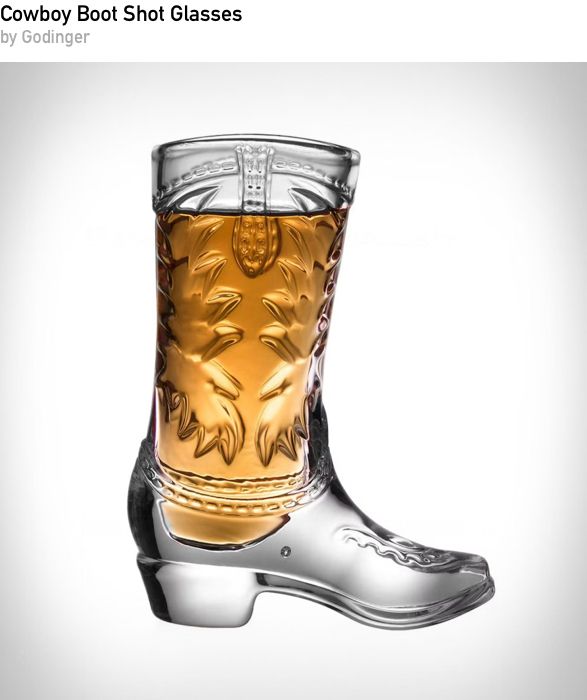 These novelty shot glasses are cast in polished metal in the shape of classic cowboy boots. A playful piece for bar carts and gatherings, they add character to any drink service and make great conversation starters for casual get-togethers.