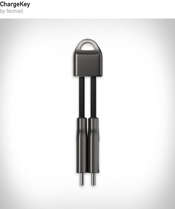 A portable keychain charging cable from Nomad that fits easily on keyrings. Built tough with durable connectors, the ChargeKey lets you plug in and power up on the go without bulky cords.