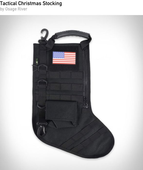 A holiday stocking built with tactical style and heavy duty materials. Perfect for outdoor lovers or gearheads, it offers rugged construction with plenty of room for stocking stuffers and essentials.