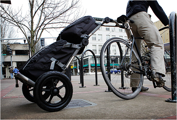 The Travoy from burnley trailers is a revolutionary new bike/lifestyle product that hitches to the seat post of any bike and detaches simply with the flip of a switch so you can wheel it down the street, up the stairs and into the office or your home. It weighs less than 10 pounds with its anodized aluminum frame, folds flat to stow away, and carries up to 60 pounds of gear. You can detach it and use it as a shopping cart.